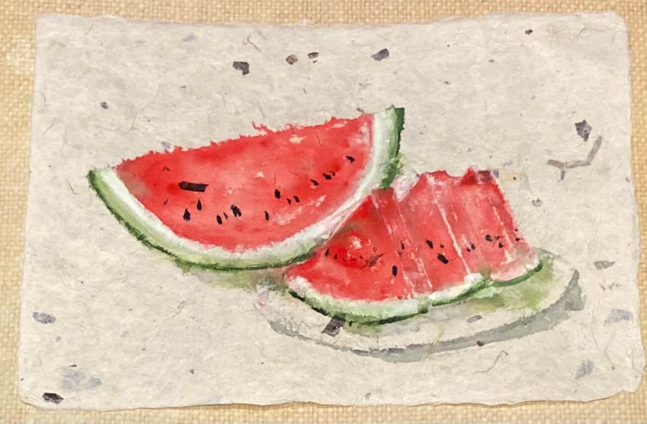 【SOLD】『今年初のスイカ 』~和紙に描く日本の美しき夏の風物絵~